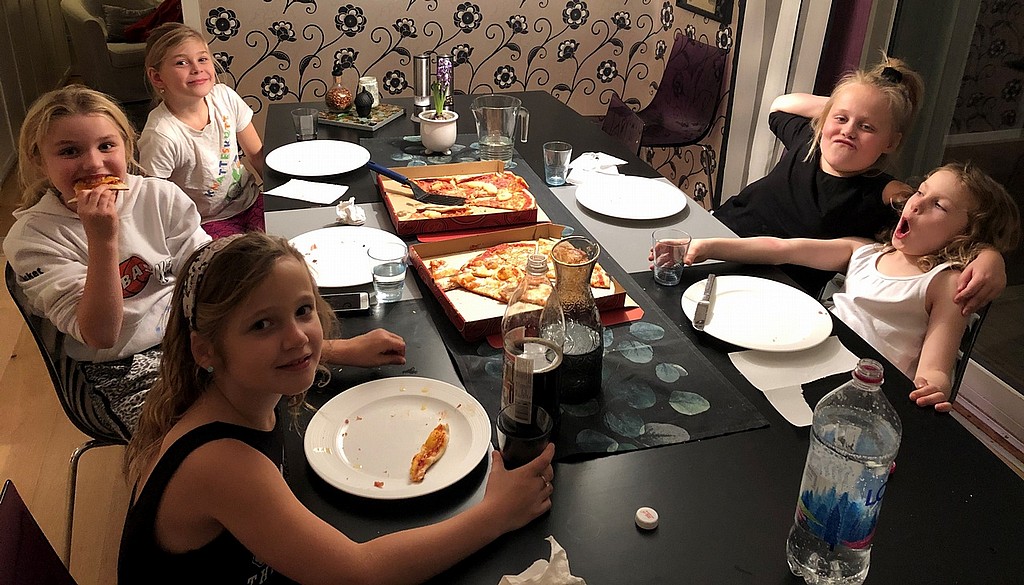 5 glada F10-tjejer hade lagmys med lekar i hallen, pizza, lussebullar och film!