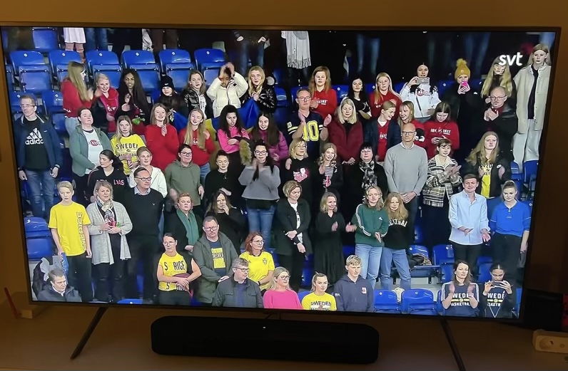 Sverige - Finland i Avicii Arena (Nov 21)Supertjejerna hejar på Sverige (som vann!) bland 10 200 åskådare varav 310 från Viby! F10 kom även på storbild 😊