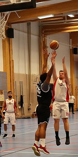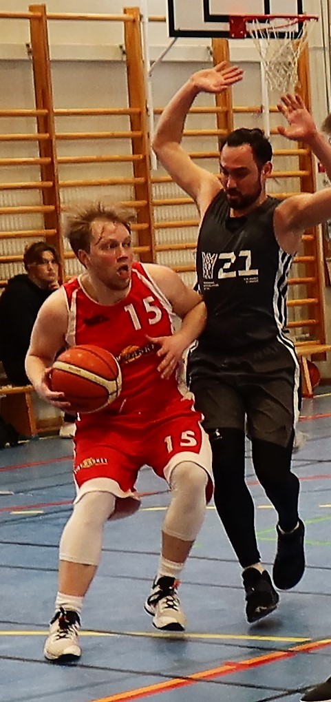 Elias gör en supersnygg move utmed baseline o skruvar i bollen mot Duga (Höst 2018, Fotograf Mats Anderson)