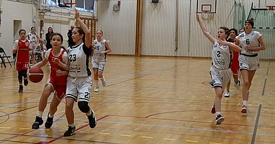 Dags för första matchen i andra halvan av serien för Röda laget (Nivå 1). Det var borta mot Skuru i Nacka Sporthall. De öppnade med att spela ett zonförsvar och vi blev lite förundrade och helt stillastående. Det blev lite diskussion om det är tillåtet med zonförsvar i denna åldersklass men efter lite regelläsande kom domarna fram till att det är ok. Bra för oss att träna mot en helt ny typ av försvar!