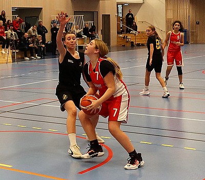 Sista matchen innan jul var det dags för returmötet mot AIK, denna gång hemma i Edsbergshallen. Precis som sist blev det en underlig match... Supertjejerna startade bra och ledde efter första perioden men bara med 10-3 efter massa missade skott. I andra höjde vi tempot och drog ifrån till 25-9 i halvlek. Men sedan blev det "segare" med mycket bortkastade inkast och tveksamma avslut. Vårt försvar fungerade dock fortsatt väl och det blev 43-21 till slut. Kul att se hur Emma fortsatte att våga utmana o gå till korg, många straffar blev det 😉